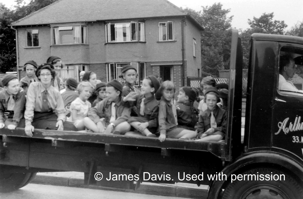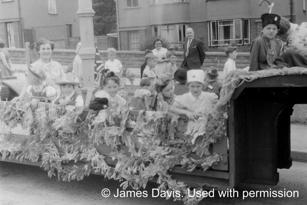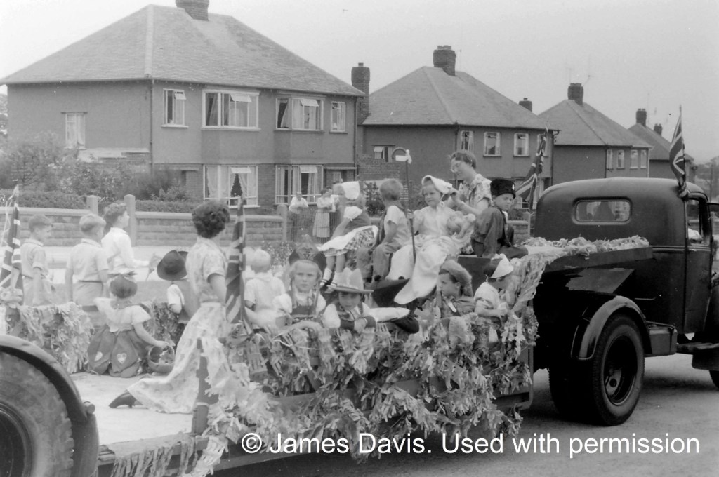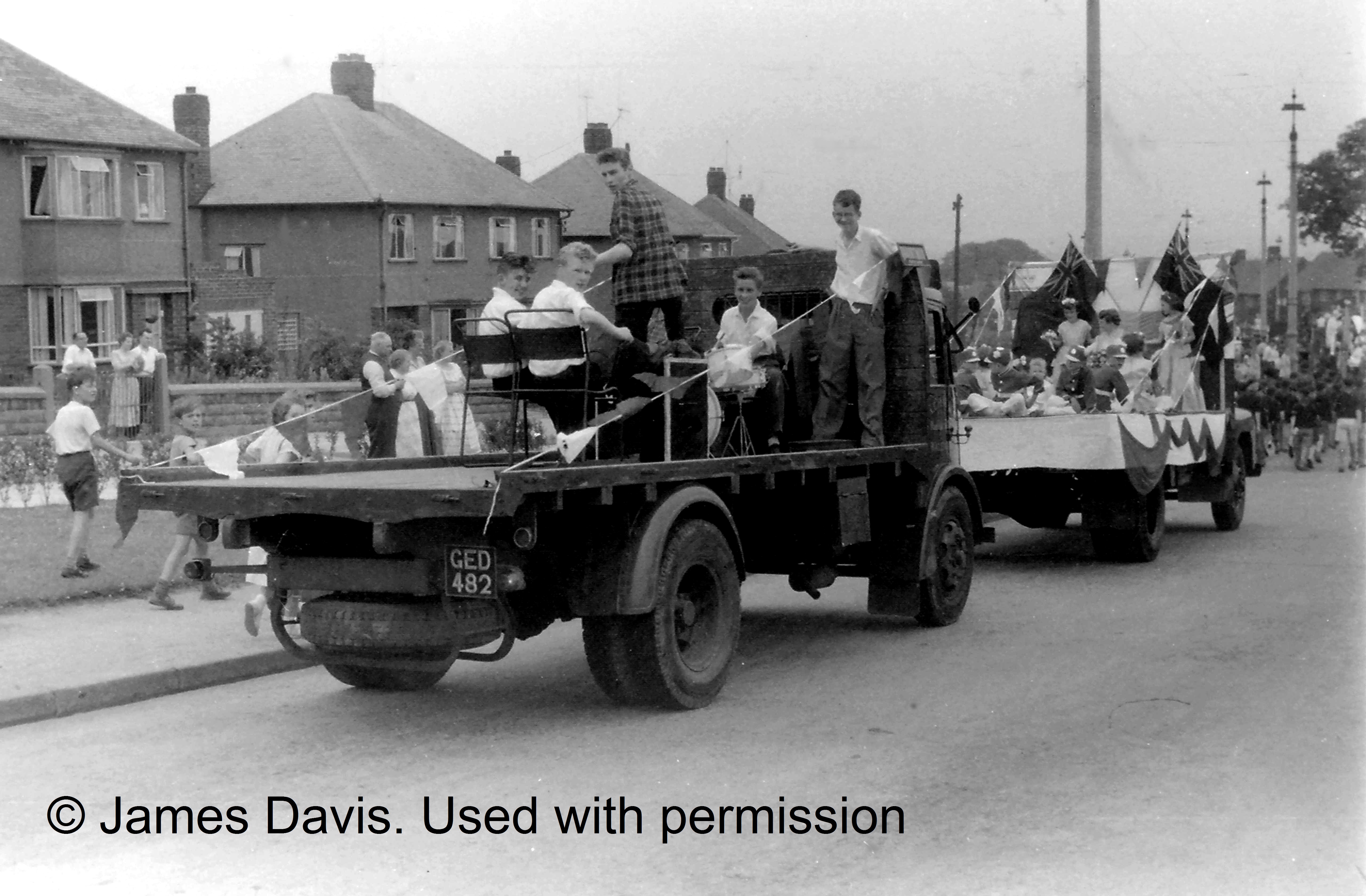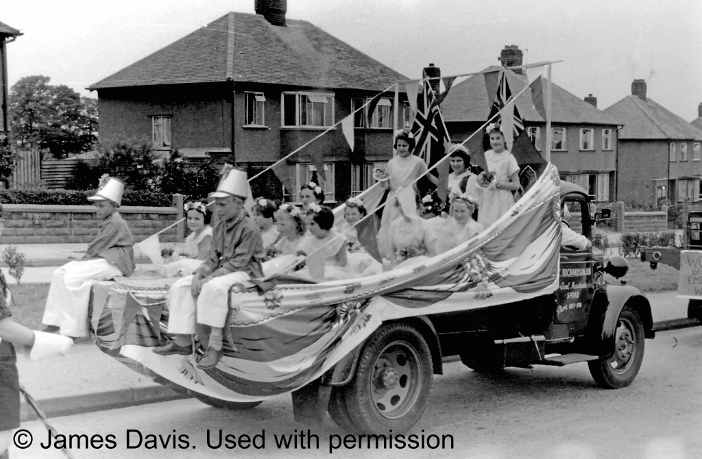 Lots of happy memories, and of faces from long ago. I was in the retinue standing on the left of Sally as you look at the photographs and if I remember rightly the other girl standing was her sister. I can even see Mr Stirrup the coal man driving his lorry with the brownies on the back .