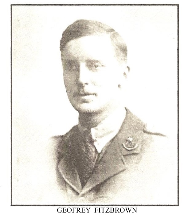 Second Lieutenant Geoffrey Fitzbrown in 1911 Geoffrey age 18 is a student in Engineering and born in Ditton Lancs and living with his Father George and 2 sisters Elsy Margaret age 22 and Mary Isabel age 20 and 2 servants at Shirley Hunts Cross.