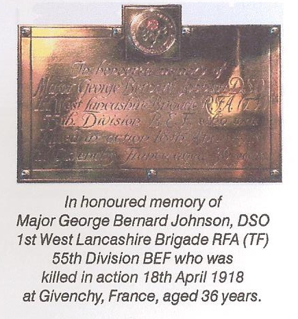 Major George Bernard Johnson DSO is also remembered on All Hallows Church war memorial.