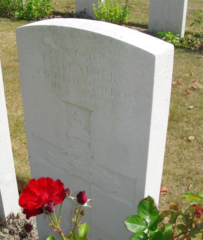 Driver John Edgar Leather Remembered with Honour Belgian Battery Corner Cemetery Ypres Belgium.